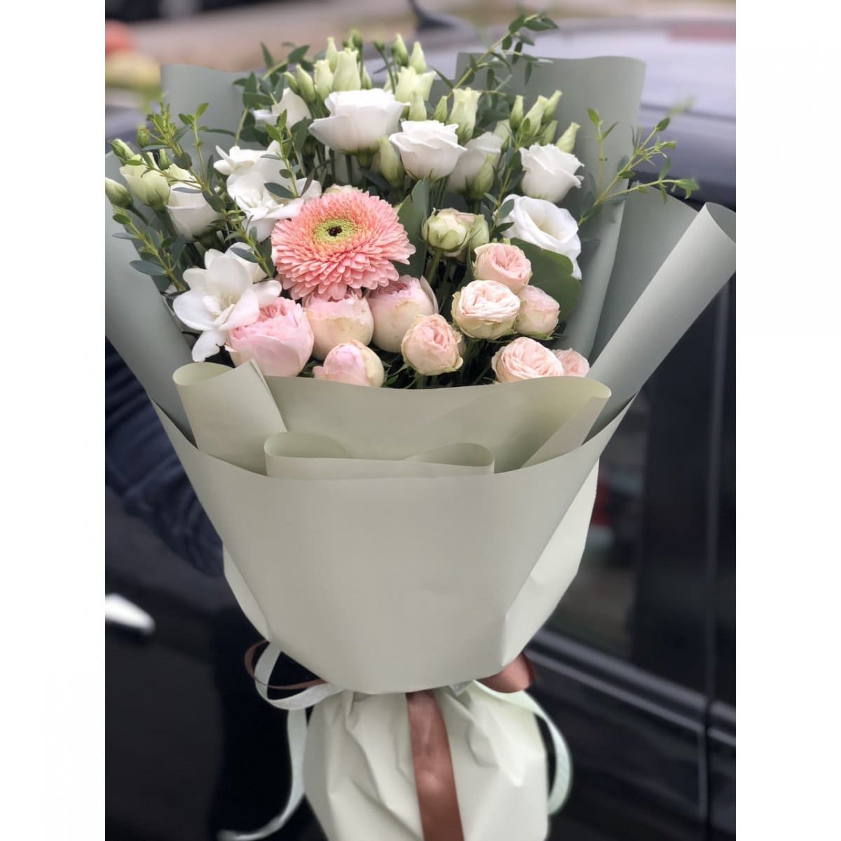 Нежнейший букет из эустомы и кустовой розы в действительности напоминает нотки воздушного безе!