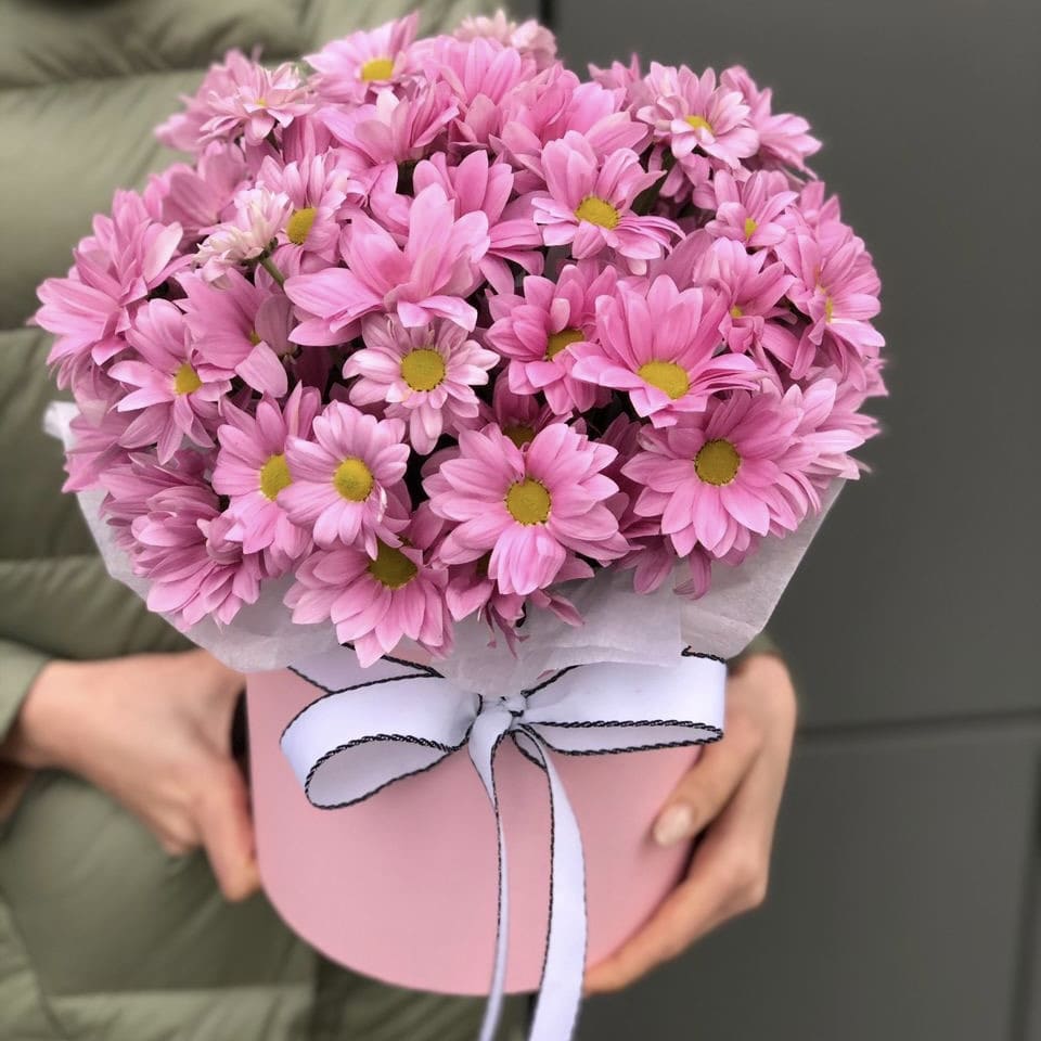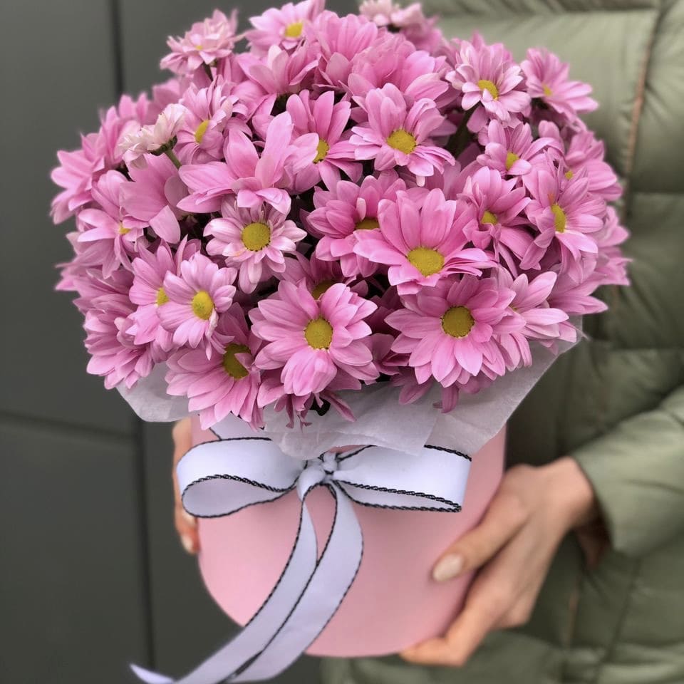 Состав: Хризантема(9), Коробка (1), Оазис (2), Оформление