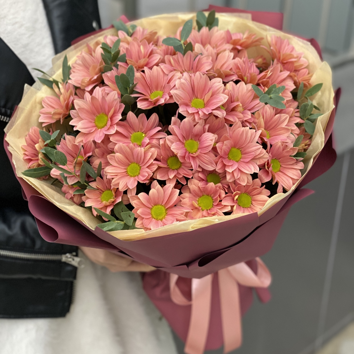 Состав: Хризантема (7), Эвкалипт (1), Оформление