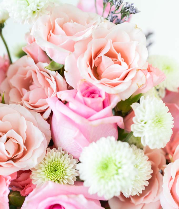 Роза (6), Кустовая роза (5) , Хризантема белая (4 ), Статица (3) ,Зелень